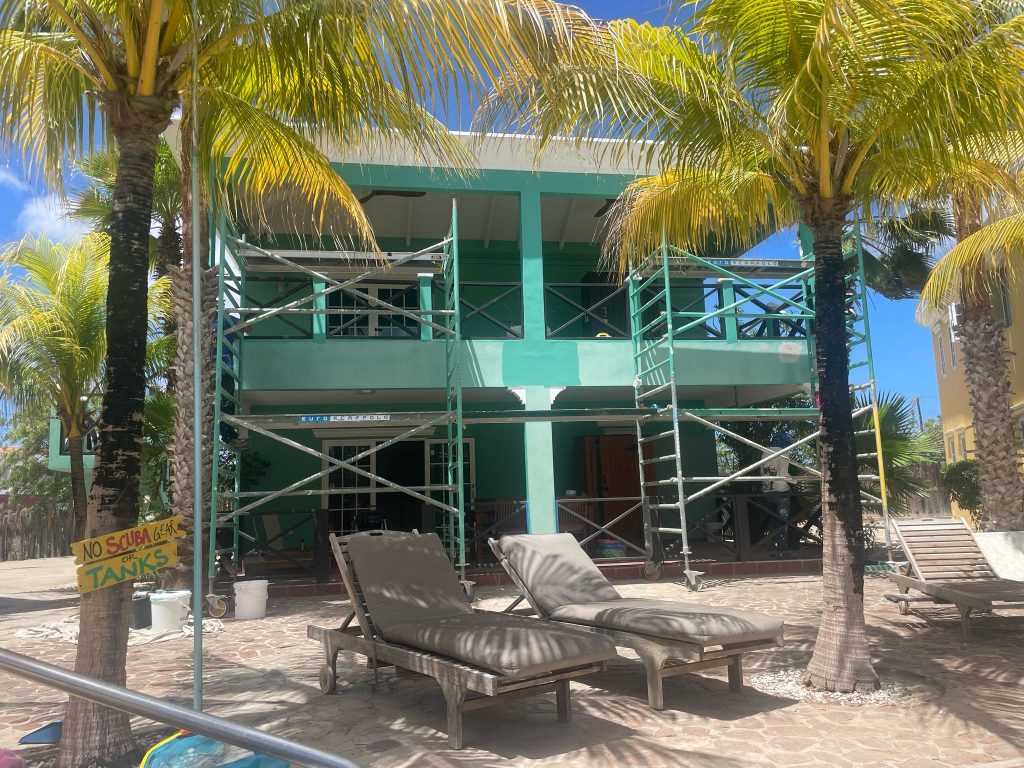 After some years in the sun it is time for a new coat of paint! We are working hard to make Villa Olivia shine again!